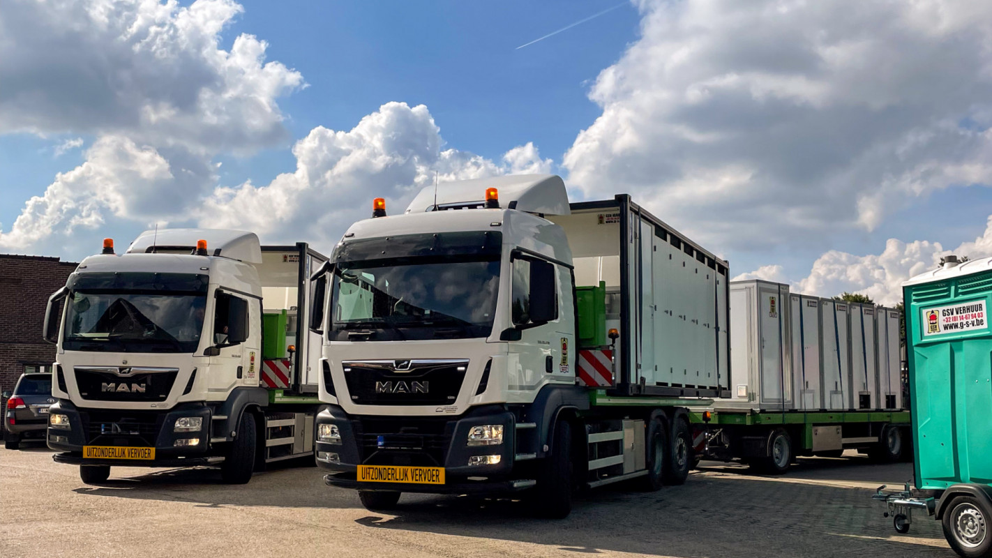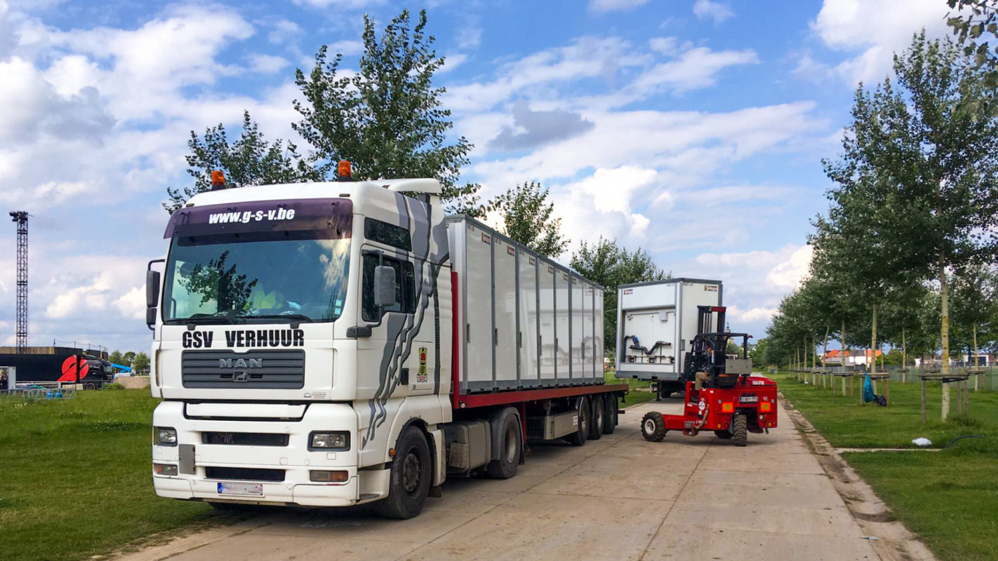 - Vervoer van toiletten, kassa’s, bureaucontainers en Heras hekken